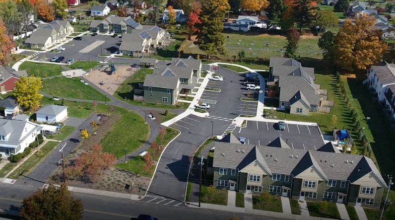 Now managed by Way Finders, Parsons Village offers 38 one- to three-bedroom townhome apartments. The units are solar-powered via a 3,708 foot solar panel array, which generates 65 kilowatts a day—enough to light 7,200 standard LED light bulbs. Each unit is super-insulated and furnished with Energy Star appliances. The property includes a playground and shared community building, as well as onsite laundry and parking.